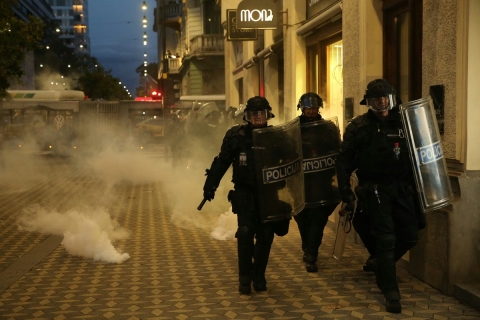 Uporaba solzivca na protestih med epidemijo: policisti se branijo z molkom