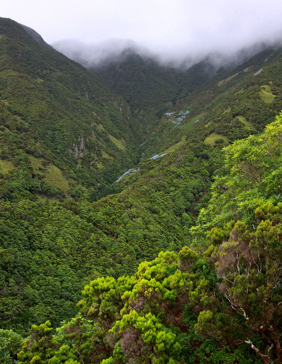 Human impact on the native flora of São Jorge can be seen by the hydrangeas (blue