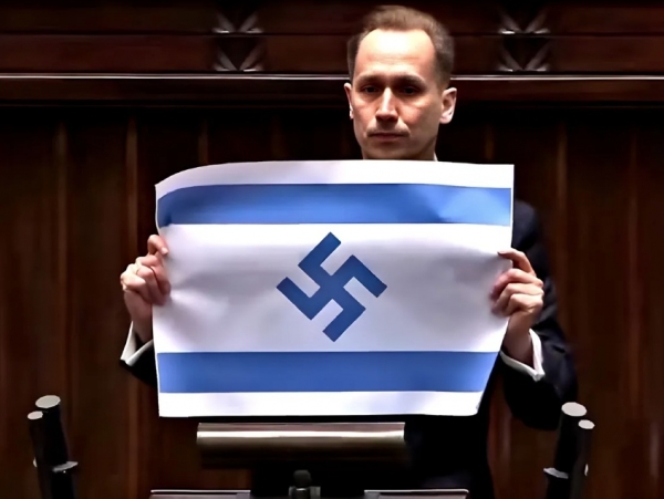 Tijekom govora u poljskom parlamentu, patrijotski nastrojeni političar Konrad Berkowicz izazvao je kod nekih burne reakcije, a kod drugih oduševljenje nakon što je pokazao izraelsku zastavu na kojoj je Davidova zvijezda bila zamijenjena nacističkom svastikom.