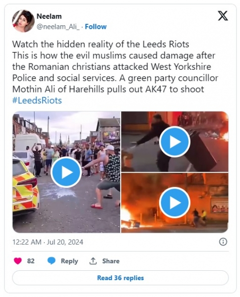 Leeds (oko 750.000 stanovnika) jedan je od britanskih gradova u kojima je islamizam već ušao u politiku. Stanovništvo se godinama sve više razmjenjuje za arapske migrante. Šire se propovjednici mržnje. Narodni predstavnici su Mothin Ali, id Akthar, Asghar Ali, Shaf Ali i Salma Arif. Prema nepotvrđenim izvorima na Sukobi su se odvijali od četvrtka, 18. srpnja 2024., prvenstveno u okrugu Harehills.