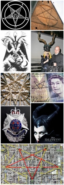 I obrnuti pentagram i bog koza Baphomet sada su se također značajno infiltrirali u iluminatsku industriju zabave, s rap zvijezdama i pop lutkama koji opetovano prikazuju simbolične reference na oboje u svojim glazbenim videima kao sredstvo za podsvjesno usađivanje sotonskog sjemena u podatne umove onih koji ih gledaju ili obožavaju.