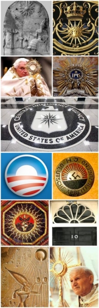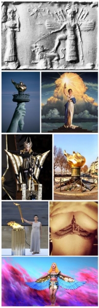 Na primjer, olimpijska baklja, koju su nacisti prvi upotrijebili 1936., sada se svečano prenosi od stupa do stupa (ili od piramide do pentagrama) dopuštajući nesvjesnim masama da uživaju u svjetlu Lucifera, dok gotovo svaka glavna ženska lutka slavne osobe prolazi kroz predvidljivu fazu globalne igre uloga božice koja illuminatima zabave daje njihove okultne udarce.