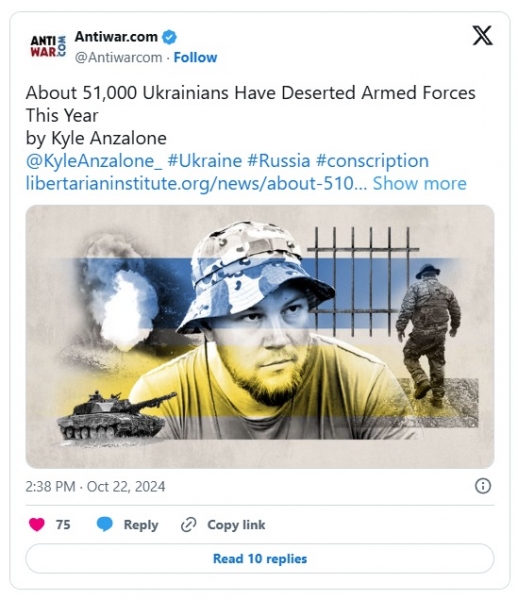 Samo u prvih devet mjeseci 2024. godine u ukrajinskoj vojsci zabilježena je 51.000 slučajeva dezerterstva. To je više nego dvostruko više nego cijele prethodne godine.