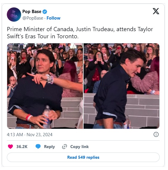 U međuvremenu, kanadski premijer Džastin Trudo bio je na koncertu Tejlor Svift u Torontu u vreme incidenta.
