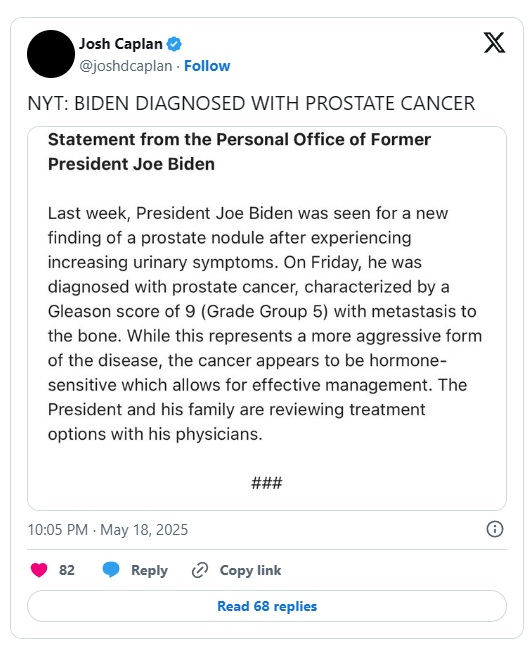 Fully vaccinated and revaccinated former US President Joe Biden has been diagnosed with an aggressive form of cancer. He is the latest in a growing list of high-profile figures to fall victim to “turbo cancer,” a condition that has been on the rise following mass vaccination campaigns with mRNA vaccines.