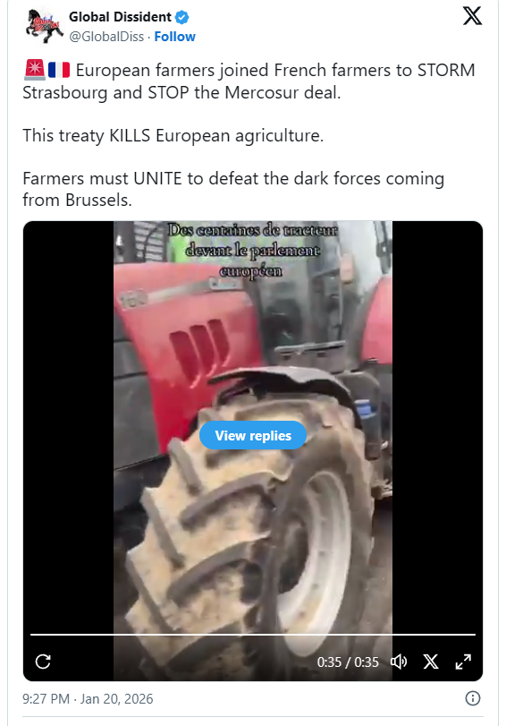 JUST IN: CHAOS in Strasbourg as farmers clash with police over the EU’s MERCOSUR deal.
