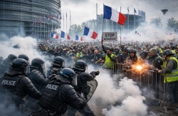 Tear gas flies, fireworks explode, and EU elites wine and dine at Davos while streets burn.