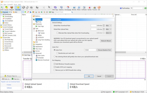 - Bandwidth Control: Allows you to set limits for download and upload speeds.