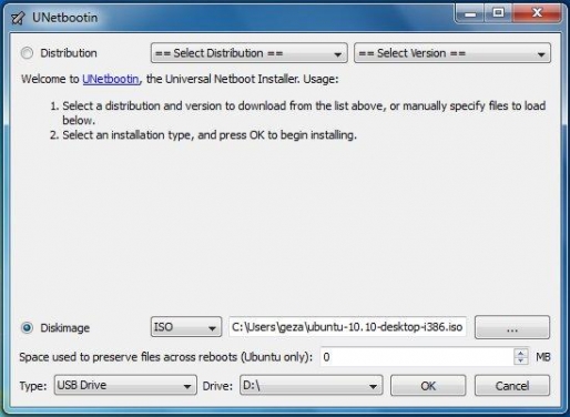 You can either let UNetbootin download one of the many distributions supported out-of-the-box for you, or supply your own Linux.iso file.