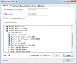 SZ PortScan enables you to scan your network computer for open ports. It generates a list that shows all the devices found in the specified IP range along with detailed information on what ports and services are available for each (MAC address, HTTP, SMB, FTP, iSCSI, SMTP and SNMP services).