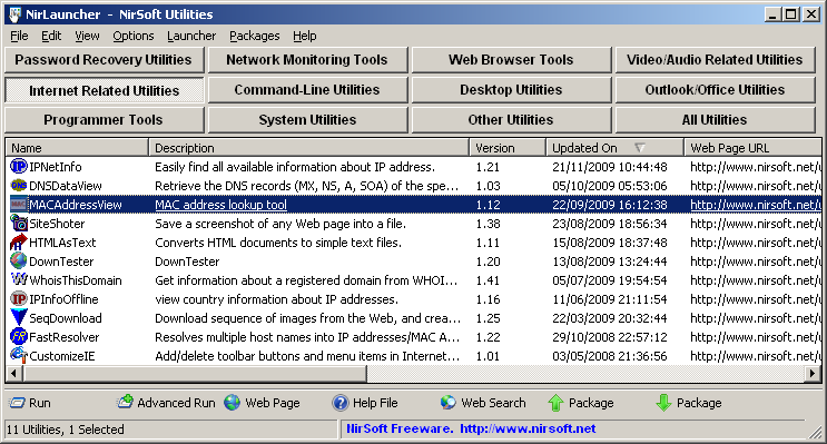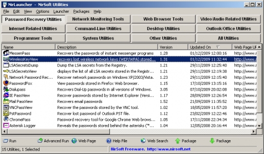 NirLauncher is a package of more than 100 portable freeware utilities developed by Nirsoft.