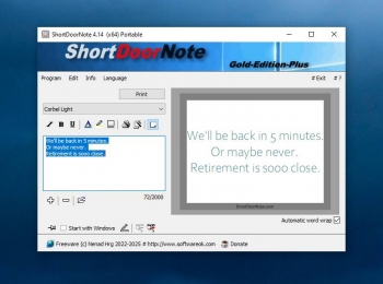 ShortDoorNote is very small tool to quickly create and print simple colored signs. ..