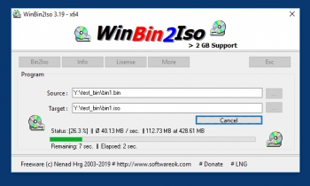 WinBin2Iso is a small and simple program that enables you to convert .bin files to .iso format. It supports files larger than 2 gigabytes and does not require any installation. ..