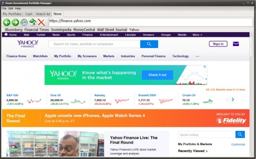 Version 2.7.4 uses Bloomberg instead of Yahoo to show the stock market index as the Yahoo page was causing the program to freeze.