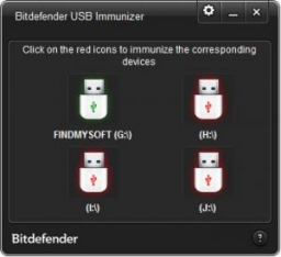 Bitdefender USB Immunizer can protect your USB drives from being infected by viruses or malware that are automatically launched via the autorun.inf file when the drive is inserted. When you run the program, it detects any removable drives that are connected and allows you to immunize them with the click of a button.