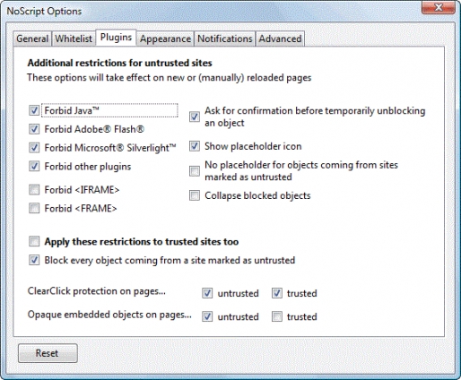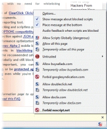 No is a Firefox extension that enables you to interactively block , , Flash and other plug-ins with the click of a button. You can choose to temporary block or allow s on the current sites and also allow your trusted sites to be exclude from any blocking action.