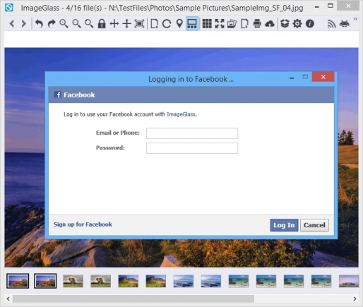 In addition, ImageGlass makes it easy to upload an image to your Facebook account with the click of a button by using the integrated Facebook uploader. The program can optionally be integrated with the Windows context menu by adding a "Open with ImageGlass" option to all supported image formats.