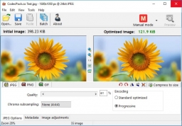 Radical Image Optimization Tool (RIOT) is a portable image optimizer software that will let you to easily compress images without losing quality. It uses a side by side (dual view) or single view interface to compare the original with the optimized image in real time and instantly see the resulting file size.