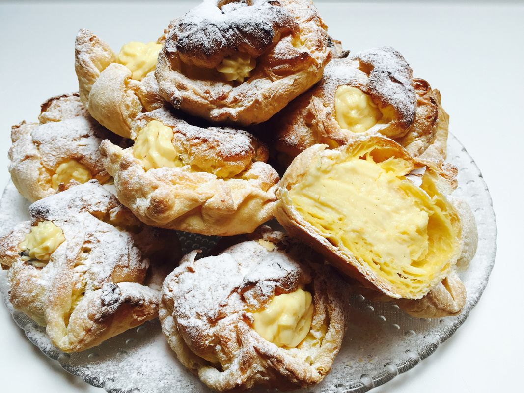 Pečemo na 200 °C približno pol ure oz. do zlatorumene barve. Ohlajenim napravimo z nožem male luknjice (so votli) in jih z dresirno vrečko napolnimo z vaniljevo kremo. Posujemo s sladkorjem in uživamo.