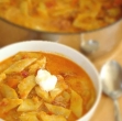 3 Vse skupaj prelijemo z jušno osnovo in dodamo fižol. Začinimo z vsemi začimbami in kuhamo približno pol ure.