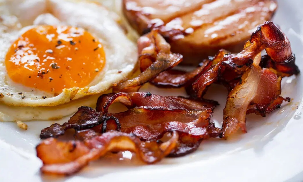 2 Ko je slanina pečena, jo premaknemo na stran in v ponev ubijemo 2 jajci. Počasi pečemo – lahko pokrijemo s pokrovko, da se segreje tudi rumenjak, vendar mora ostati tekoč. Solimo in popramo po okusu.
