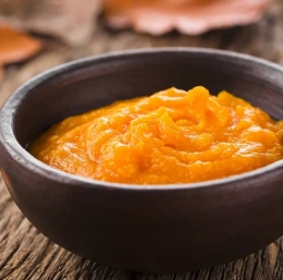 6...Katerikoli način termične obdelave bomo uporabili, nadaljnji postopek je vedno enak. Še tople koščke buče damo v visoko in ozko posodo in zmiksamo v gladek pire. Če nam ostajajo koščki, pire pretlačimo čez gosto cedilo.