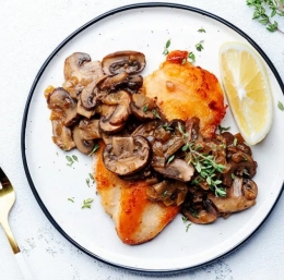 za piščančje zrezke v omaki s šampinjoni in vinom