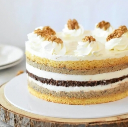 Na orehov nadev položimo drugo plast svetlega biskvita, ga z rokami nežno pritisnemo ob kremo in navlažimo. Premažemo ga z ostankom skutine kreme in torto damo v hladilnik za vsaj 6 ur, najbolje čez noč.
