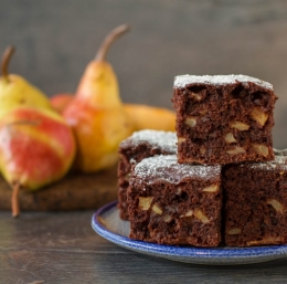 Testo damo v pekač in ga poravnamo. Hruške narežemo na rezine in z njimi obložimo testo, nekaj jih prihranimo za okras. Pekač damo v ogreto pečico in pečemo 35 minut. Ko je testo pečeno, pekač preložimo na mrežico, da se ohladi.