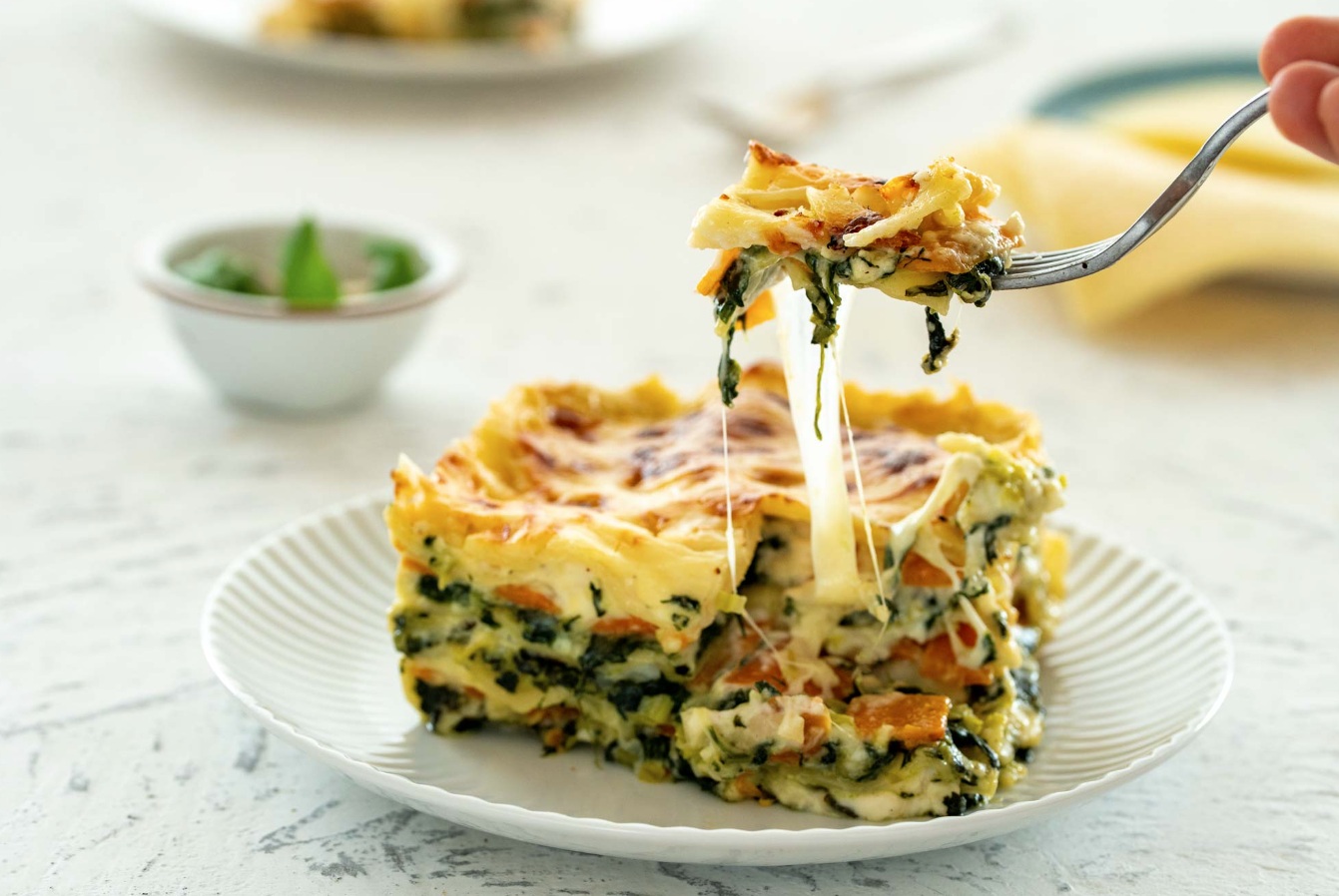 Lazanja s tremi siri je popolno razvajanje za vse ljubitelje sira. V osnovi jo pripravimo v vegetarijanski različici, lahko pa ji dodamo tudi mleto meso za vse, ki želijo bolj mesno izkušnjo.