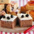 165 g moke 50 g kakava v prahu 3⁄4 žličke pecilnega praška 1 1⁄4 žličke sode bikarbone 200 g svetlo rjavega sladkorja muskovado 80 g ohlajenega stopljenega masla 1,5 dl kisle smetane 1,35 dl vroče močne črne kave 2 velika beljaka
