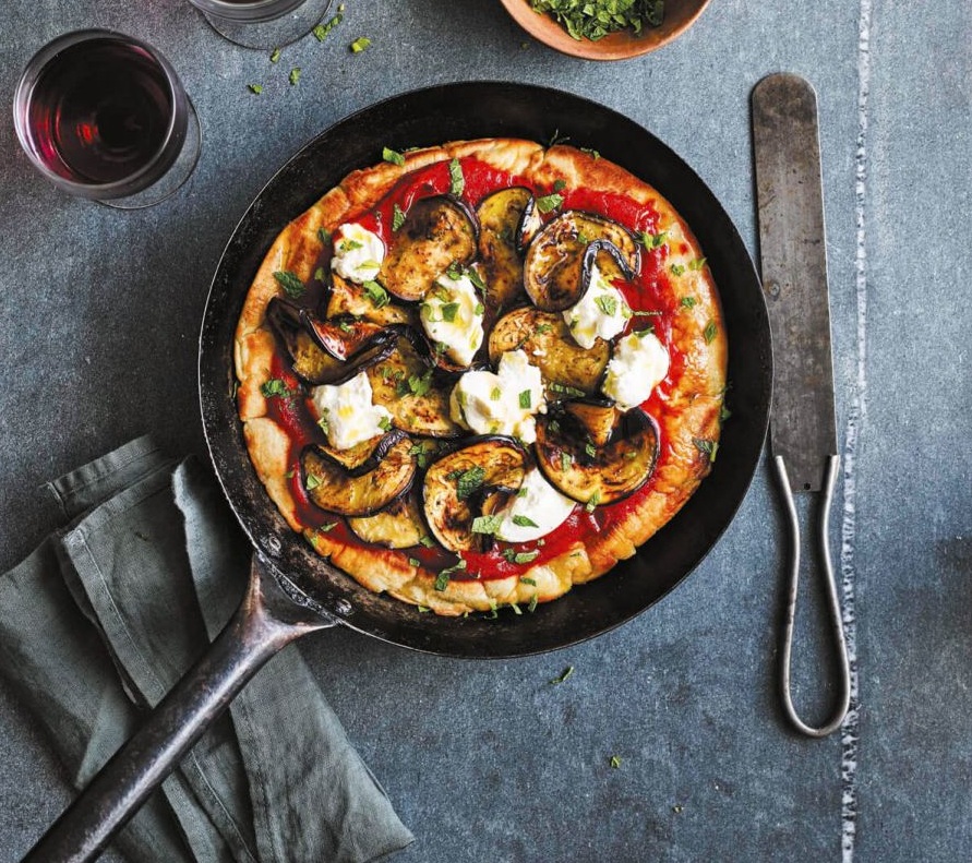 KUHINJA.COM | Poletna pica v ponvi z jajčevci, skuto in meto ...