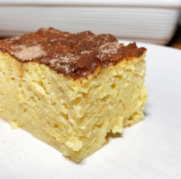 Sladica, ki jo boste pripravili v hipu. Vse sestavine preprosto zmešate skupaj, na koncu pa vmešate še beljakov sneg. Dobili boste sočno poslastico, ki bo lepo zaokrožila vaše kosilo. Če v trgovini ne boste našli prosene moke, v mlinčku zmeljite enako količino prosene kaše, namesto koruznega škroba pa lahko uporabite tudi prašek za vanilijev puding.
