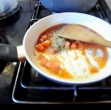 Ponev odstavimo z ognja in pustimo, da se maslo nekoliko ohladi, a ne strdi.