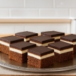 Zmes vlijte v pekač, pogladite in pecite 20–25 minut, dokler zobotrebec ne pride ven čist. Pečen biskvit ohladite in prerežite na dve enaki plasti. Sestavljanje peciva: