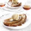 Banani narežite na kolute. V ponvi raztopite maslo, dodajte žlico sladkorja in počakajte, da se rahlo karamelizira. Nato dodajte banane, jih rahlo premešajte in po minuti odstranite z ognja. Pustite, da se hladijo približno dve minuti.