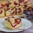 1,5 skodelice pšeničnega zdroba 1,5 skodelice sladkorja 2,5 skodelice moke 10 g pecilnega praška 1 kg sliv 4 žlice sladkorja 20 g vanilijevega sladkorja 1,5 skodelice mleka 1 jajce 50 g stopljenega masla ali margarine
