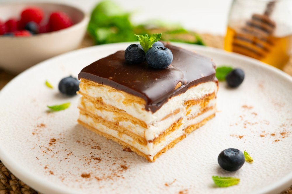 | Namesto zapletenega testa se uporabljajo plasti piškotov, kremo pa nadomesti hitra kombinacija pudinga in stepene smetane. Rezultat je sladica, ki spominja na ekler, vendar je pripravljena z minimalnim trudom.
