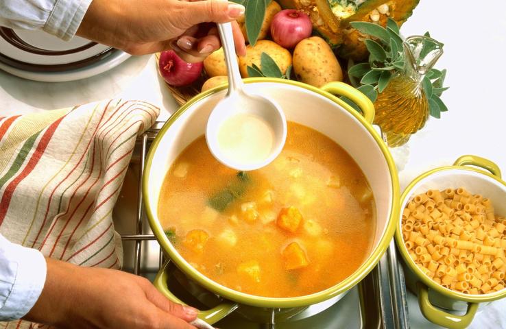 Jedi dodajte rezine surovega krompirja ali jabolka, odvisno od tega, za kakšno jed gre.