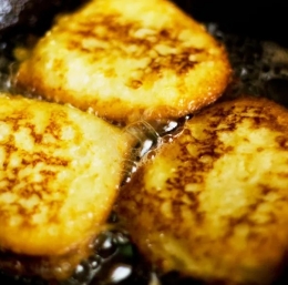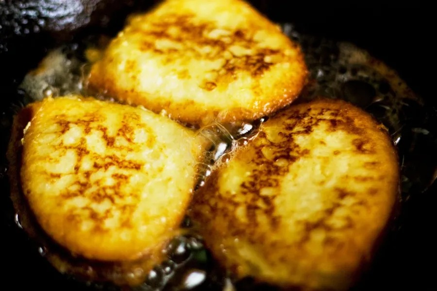 Za pripravo v ponvi potrebujete iste sestavine, le da naj bodo rezine kruha tanjše ali pa uporabite toast. Ker boste "šnite" popekli na manjši količini olja, je namreč pomembno, da so kosi kruha dovolj tanki, da se lahko enakomerno zapečejo. Na srednjem ognju jih pecite nekaj minut na obeh straneh oziroma dokler niso zlato rjave.