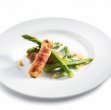 12. V široki posodi zavremo vodo in jo solimo. Šparglje stresemo v krop in jih po 2–3 minutah stresemo v cedilo in ohladimo pod tekočo vodo.