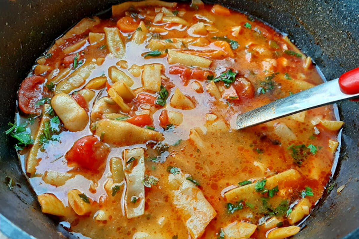 Stročji fižol po babičino, boranija je lahko prikuha ali lahka samostojna jed.