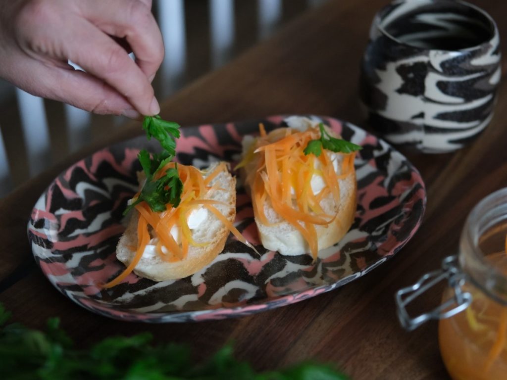 1. Oprano korenje narežemo na tanjše kolute ali na način julienne.