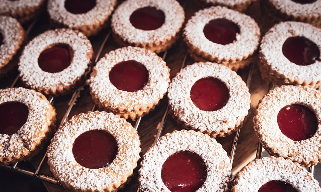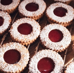 5 V lončku segrejemo marmelado, ki smo ji dodali žlico limoninega soka, da dobilo lepo mazljivo zmes. Na vroče piškote (brez luknje) damo žličko z marmelado, čez damo obroček, odložimo in počakamo, da se ohladijo in potresemo s sladkorjem v prahu.