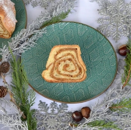 Ponovno ga pregnetemo, zopet malo pustimo, ga razvaljamo za prst debelo (1,5 cm) in premažemo z nadevom. Zvijemo ga zelo na tesno. Potico naložimo v pekač, jo z rokami nekoliko poravnamo (pritisnemo), večkrat prebodemo z vilicami in pustimo, da naraste vsaj še za enkrat. Nato jo pečemo eno uro na 180°C.