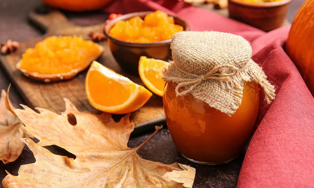 2 kg buč 1 vaniljev strok 1 cimetova palčka 1 limona – sok 2 neškropljeni pomaranči 500 g sladkorja 1 ščepec soli