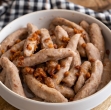 3 Kuhan krompir precedimo (prihranimo vodo, v kateri se je kuhal), mu dodamo fižol in vročo mast ali olje.