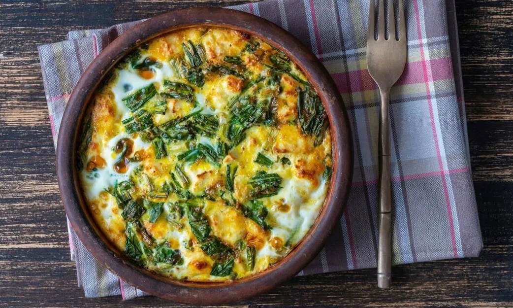 3 Jajca razžvrkljamo in dodamo vodo, sir, čemaž ter sol in poper. Vse skupaj vlijemo v maso iz čebule, bučk in šampinjonov.