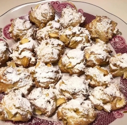 Na pekač, ki smo ga obložili s peki papirjem, polagamo kepice v velikosti marelice, ki jih oblikujemo z dvema žlicama. Pečemo 20 minut na 180 °C, nakar jih posujemo s sladkorjem v prahu.