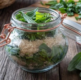 Pustimo stati čez noč, ker se listi nekoliko posedejo. Naslednji dan dodamo še plast trpotca in sladkorja. Kozarec dobro zapremo, zavijemo v alu folijo in postavimo v hladen prostor s stalno temperaturo, najbolje v klet.